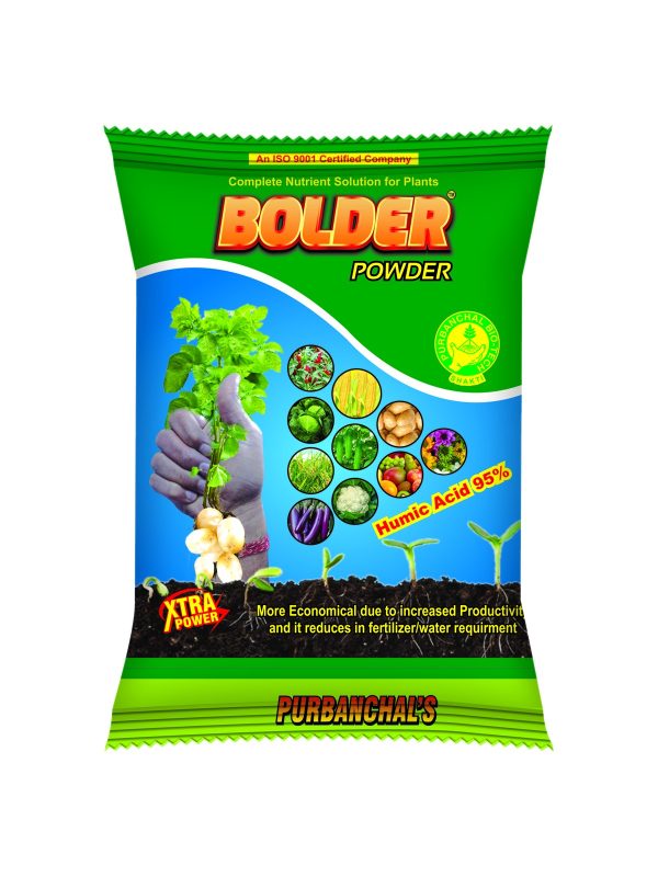 BOLDER – an unique soil conditioner , a naturally occurring organic substance consisting primary of levels of minerals , gypsum and clays . The molecular structure provides numerous benefits to crop production meterial incorporation to the soil , accelerating its deomposition & nutrient utilization and eventually increase content of the soil.